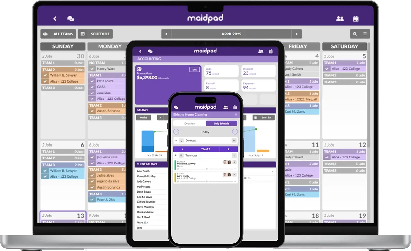 Ajudamos sua empresa de limpeza a organizar e proteger todos os dados do seu negócio dentro do sistema MaidPad.